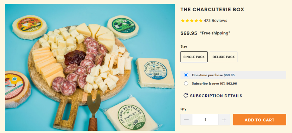 When we set out to build a charcuterie pack, we wanted the ultimate in flavor variety. We started with the savory: Americano salami from La Quercia meats and Smoked Gouda. We then added the rich and sharp: 8-year-aged cheddar, the Italian-style Fratello, and our top-seller, Rhapsody. Finally, we topped it off with the sweet: cherry lavender jam from Wisconsin's own Bushel and Peck. A perfect assortment for wine and cheese parties or a gourmet gift. Contents: Three 6 oz. blocks of Wisconsin cheese (Dill havarti, Fratello, and smoked gouda, six included in Deluxe Pack). Two 5 oz. blocks of Wisconsin reserve cheese (Rhapsody and 8-Year-Aged cheddar, four included in Deluxe Pack). One 5.5 oz. black peppercorn garlic salami from La Quercia Meats of Norwalk, IA (two included in Deluxe Pack). One 8 oz. jar of Cherry Lavender Jam from Bushel and Peck of Beloit, Wisconsin. Deluxe Pack also includes: One 8 oz. jar of Classic artisan mustard from Mustard and Co., plus one 5 oz. package of Classic White Organic from Potter's Crackers of Madison, Wisconsin (currently replacing the Six-Seed crackers. *If temperatures at your location are above 60 degrees, your package will arrive in an insulated box and not in the pictured gift box. Please review our shipping policy for additional details.