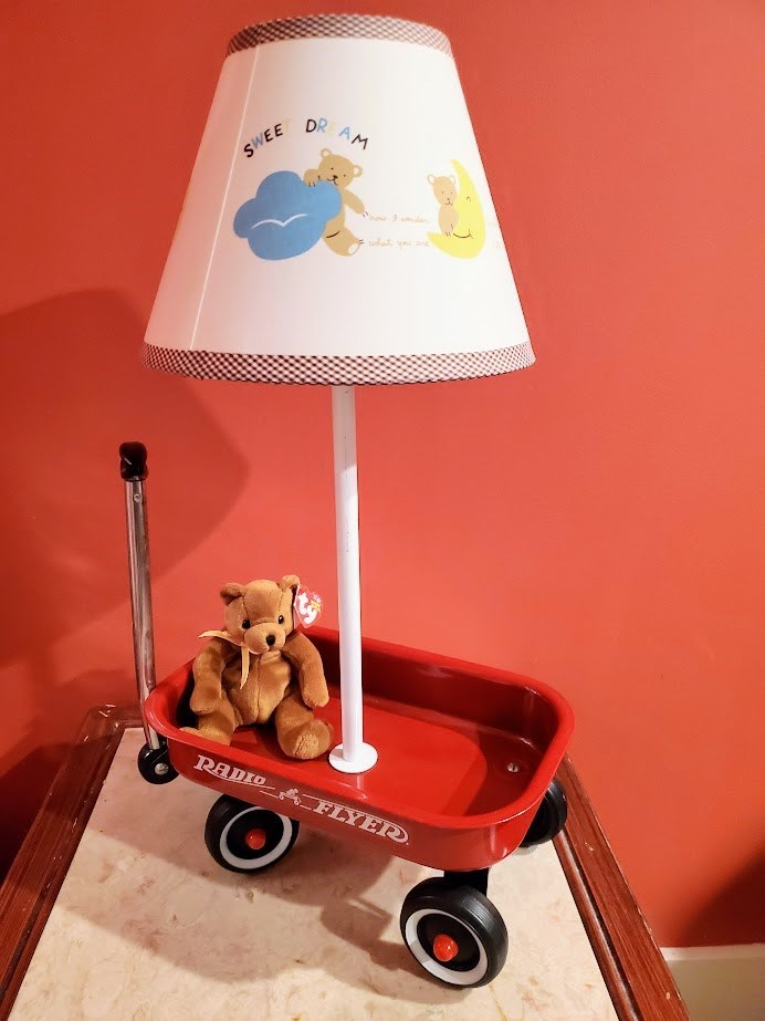 Children's Bedside Lamp TIGER’S SALVAGE My father, Comer, found usefulness and at times beauty in things others no longer wanted or discarded. He was a collector, a craftsman, a folk artist, often utilizing items people gave him, or he found along the way. His nickname was “Tiger” most folks that knew him called him Tiger. I really am not totally sure of the origin of that nick name, but it does go back the days of CB Radio in the seventies. Tiger was his CB handle. This web site and the items for sale here are repurposed from his “collection”, his “merchandise” as he referred to it. I am continuing the tradition. Shipping available for an additional fee.