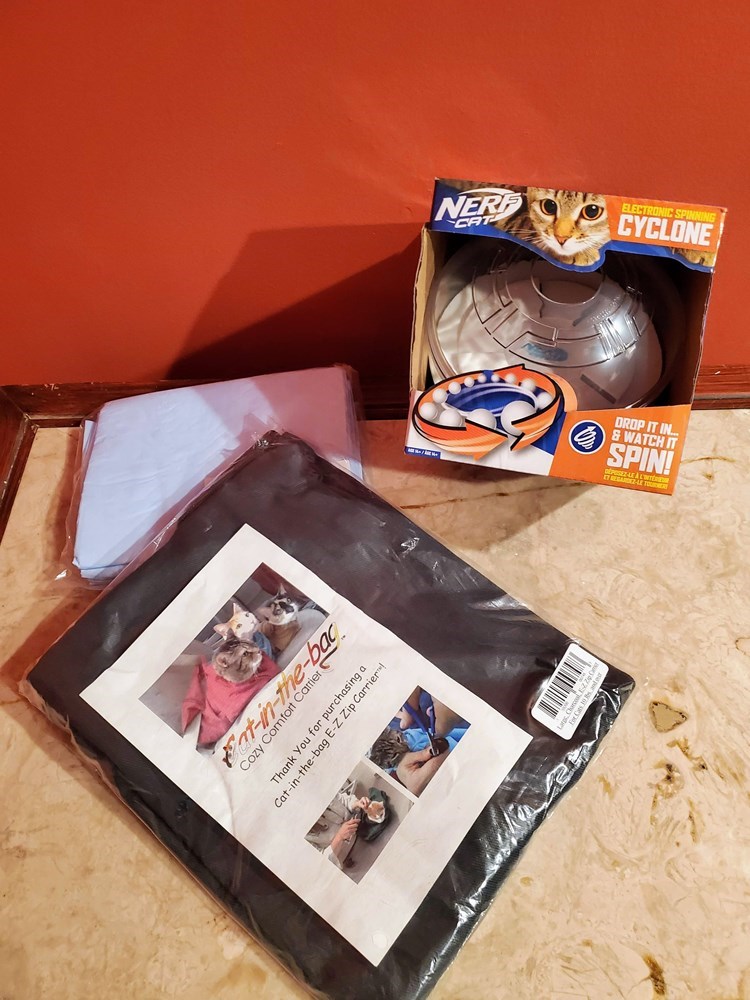 Cat in the Bag and Nerf Cyclone for your kitty!