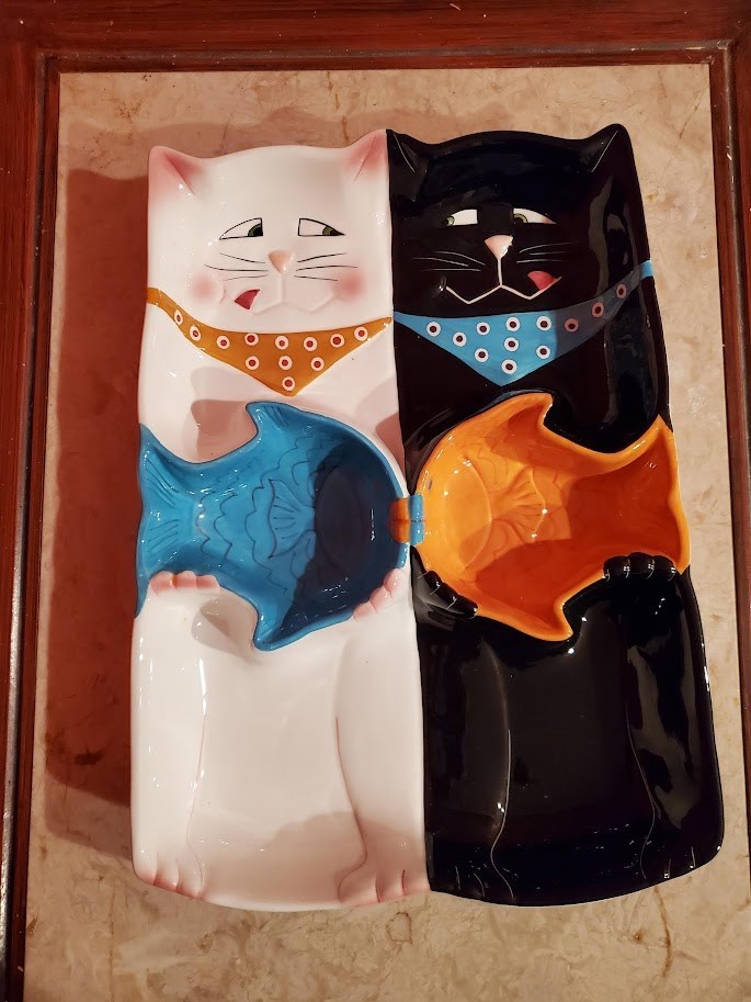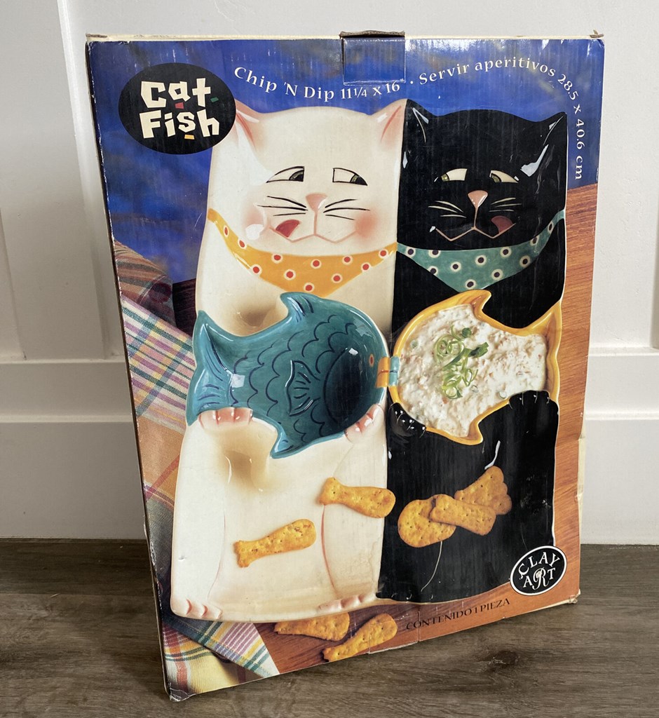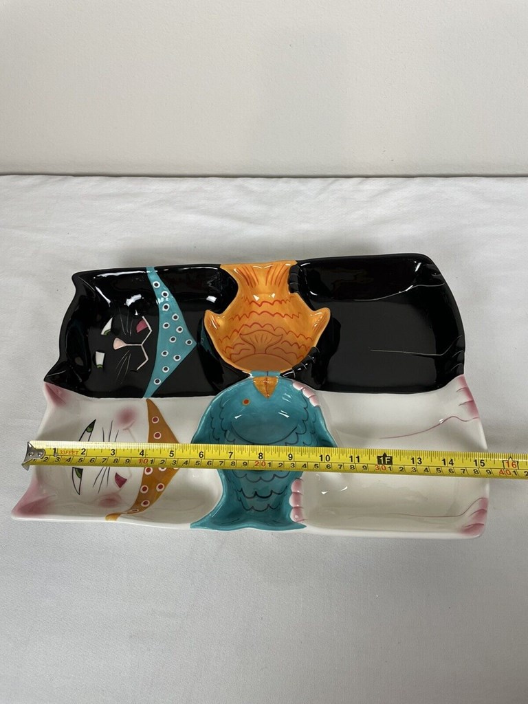 Clay Art "cat Fish" Series Chip & DIP or Veggie Large Serving Platter 16x11
