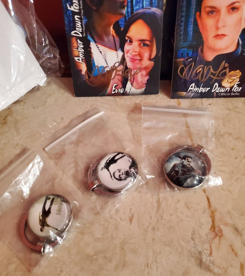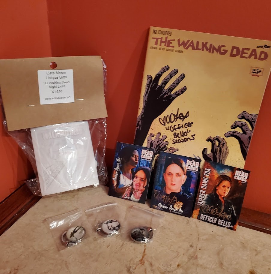 These items were donated by the lovely Amber Dawn Fox and Cats Meow! Autographed The Walking Dead Comic Book Autographed Dead Cards Three Unique Keychains The Walking Dead Nightlight by Cats Meow