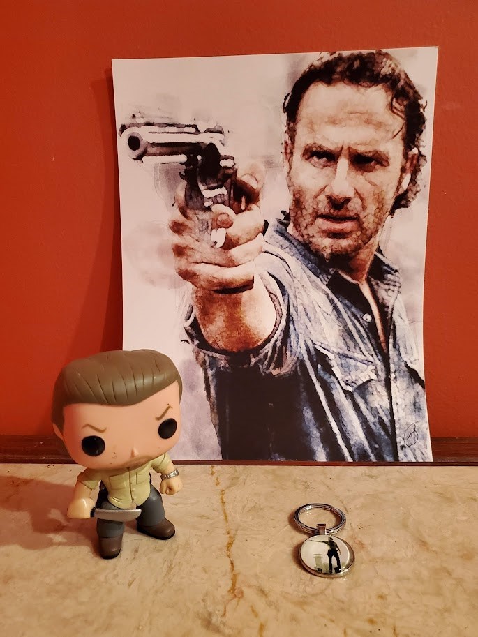 Now that Rick Grimes is coming back in his own series, The Ones Who Live", we know you need to get your memorabilia! Start here! Rick Grimes Watercolor Print Rick Grimes Keychain Funko POP Rick Grimes Prison Yard (open, no box)