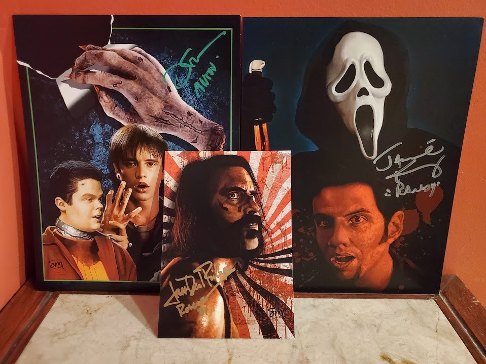 Your favorite horror flicks! Each photo by Sooki Martinson is signed by the actors! What a great piece for your collection! Devon Sawa (Idle Hands, Final Destination, Casper) Jeffrey Daniel Phillips (Rob Zombies 31, The Munsters, Geico Caveman) Jamie Kennedy (Scream, Son of the Mask, Jamie Kennedy Project)