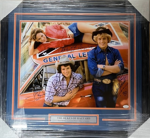 DUKES OF HAZZARD SIGNED BY CATHERINE BACH, TOM WOPAT & JOHN SCHNEIDER