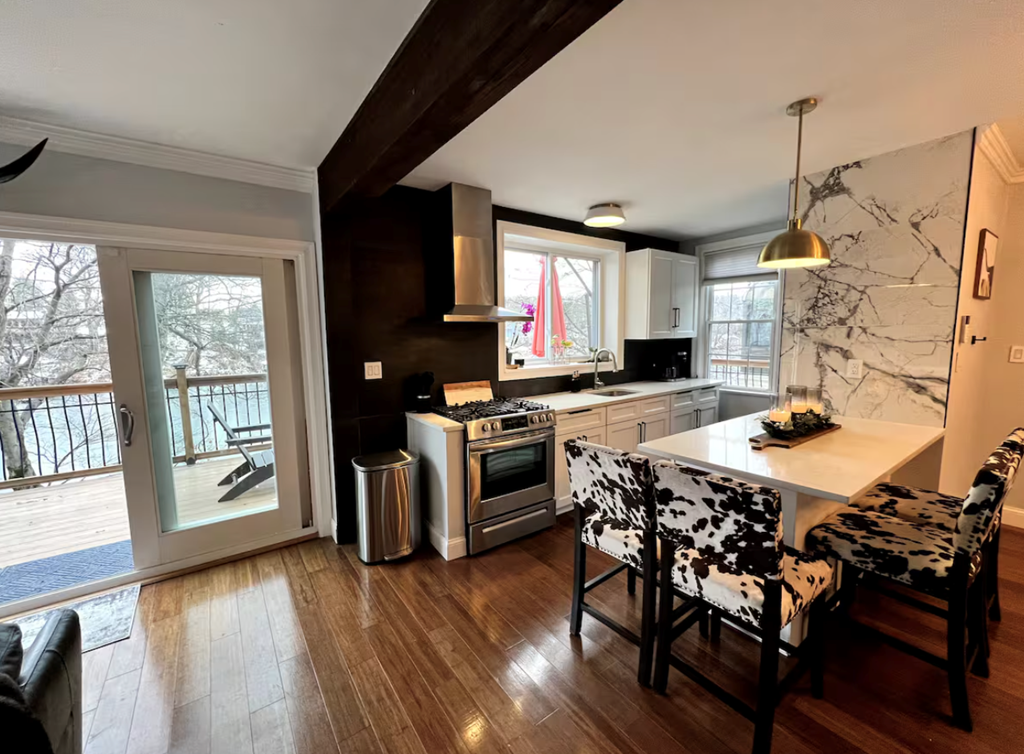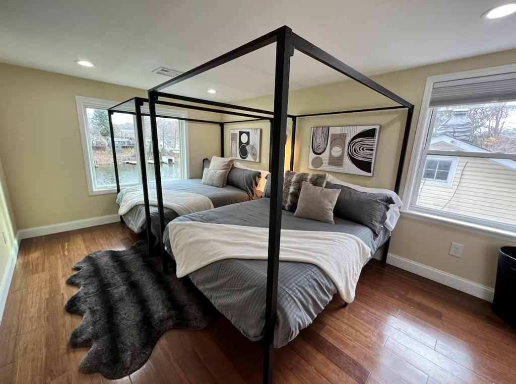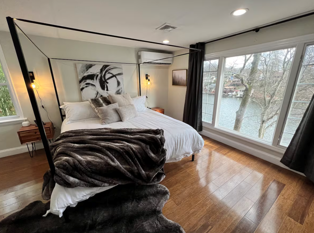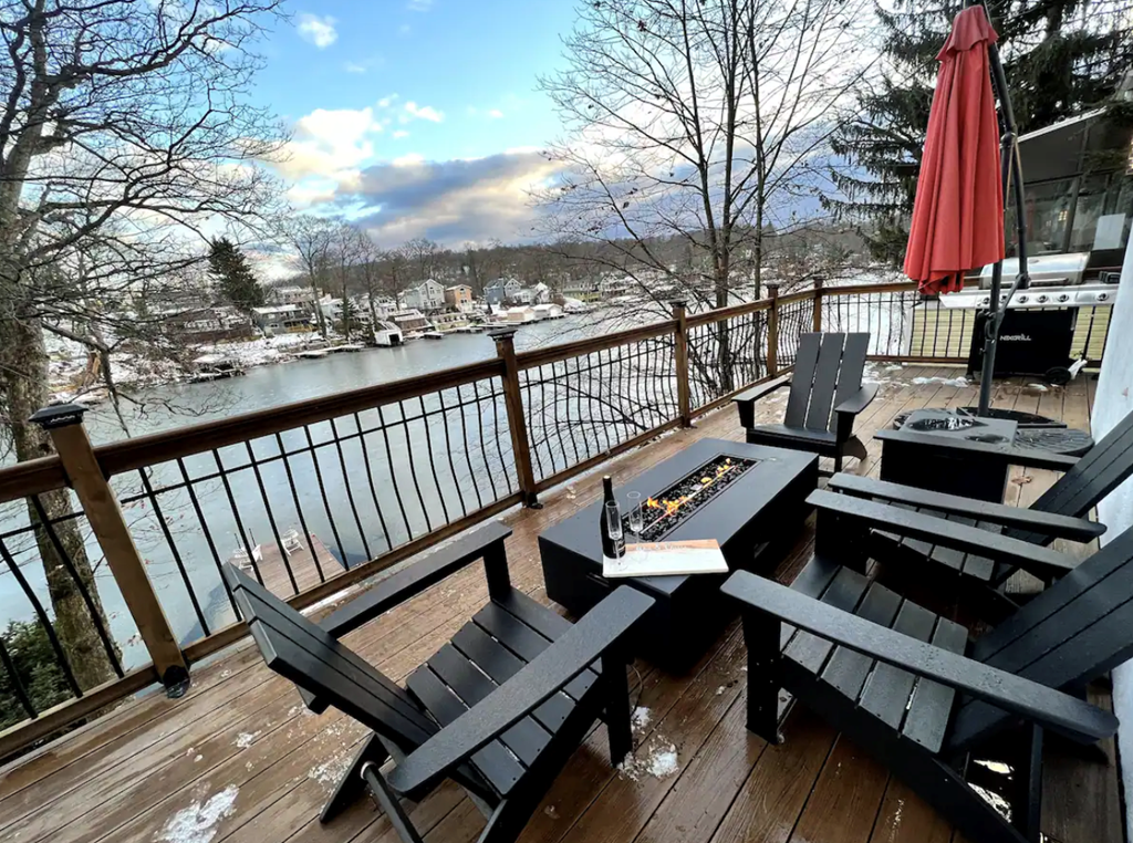 2 night midweek stay (non-holiday) good for January 2026 - Feb 2026. To schedule stay, winner will schedule with host directly. Keep In Mind: Guests will have full access to the main house via a long 50 step staircase. Please note that stair climbing is required both inside the house and to get down to the main house! About House: Waterfront views and cozy vibes. Located directly on Lake Hopatcong, we cannot wait to welcome you to Hudson House. As you step into our fully renovated home, you will be immediately greeted with every modern luxury imaginable. Panoramic lake views from all three floors, Hot Tub, 4k tv's in every room, oversized soak tub, pool table, dock access and so much more! Allow us to be your home away from home on the Lake. Welcome to Hudson House. Keep in mind: Guests will have full access to the main house via a long 50 step staircase. Please note that stair climbing is required both inside the house and to get down to the main house! The space As you step onto the property, you will first notice the gorgeous panoramic lake views. This house includes full dock access year around, two viewing decks with a hot-tub, outdoor furniture, and fire table--all meticulously maintained for your enjoyment. As you go outside to the deck and backyard, you will step into the greatest feature of the entire property. Just steps away from the modern interior and rustic lake atmosphere, you have every outdoor amenity imaginable. The oversized wood deck includes a grill as well as heated seating areas. The outdoor dining table can seat the entire family for an enjoyable family dinner, just steps from the water. And most importantly, spend all summer long swimming and floating your days away in the lake! Stepping though the front door, you will be ushered into the main living room. This living space is outfitted with an over-sized full leather sectional, perfect for the whole family. Over the mantle sits a 65 inch 4k smart tv equipped with every internet channel you might desire. And don't forget, full lake views sit right out the window for 24/7 enjoyment. From there, you can make you way into the fully modernized kitchen. This space boasts full marble backsplash and countetops. All of the appliances are brand new stainless to make your modern dinner dreams come true. In the corner of the kitchen, you will find our coffee bar, complete with everything you would need to make the perfect cup in the morning. The kitchen comes fully furnished with every glass/plate/cutlery/pot/pans/etc, that you imagine. This space is the cook's dream! As you step across the hall, you will find yourself in the study/office. This office is equipped with a monitor, keyboard, mouse, smart tv, and a natural grain desk with office chair for a perfect working environment. Spend your day working from home and watching the water go by! Also, don't forget about the twin size leather day bed, for the perfect night's rest (or afternoon nap break in office!). Across the hall is our fourth bedroom equipped with double bunk twin beds. This room is perfect for the kids and has extra storage for clothing along the way! The main floor also includes a full marble, luxury bathroom equipped with everything you'd need for the perfect spa-style shower experience! As you make your way down the stairs, to the basement, you can step right into the fully equipped game room. The family will have a blast relaxing and shooting pool on this regulation-size table. Or, take your shot at the oversized shuffle board table. Lastly, there is 75 inch, 4k tv and seating area to catch the game or snuggle up for a movie night. As you take the steps upstairs, you will be able to step into the extra large spa style bathroom. This bathroom features a modern, tiled corner shower In the corner, you will notice the extra deep, soaker tub, perfect for relaxing and pampering. Imagine winding your days down in this spa-style environment. The master bedroom is equipped with a 12 inch gel memory Foam king mattress that is guaranteed to set you right to sleep. The oversized pillows and luxury bedding are sure to make your night as comfy as possible. A 60 inch 4k smart tv is mounted to the wall just in case you want to catch a show as you are dozing off. And, don't worry, there is ample storage space for your clothing in the dresser. Most importantly, don't forget full panoramic views of the lake all day long. Across the hall, the final bedroom also includes two queen-size 12 inch memory foam mattress as well as a 65 inch, 4k smart tv mounted to the wall. These beautiful bedrooms may have the best view in the house as it overlooks the water and backyard.
