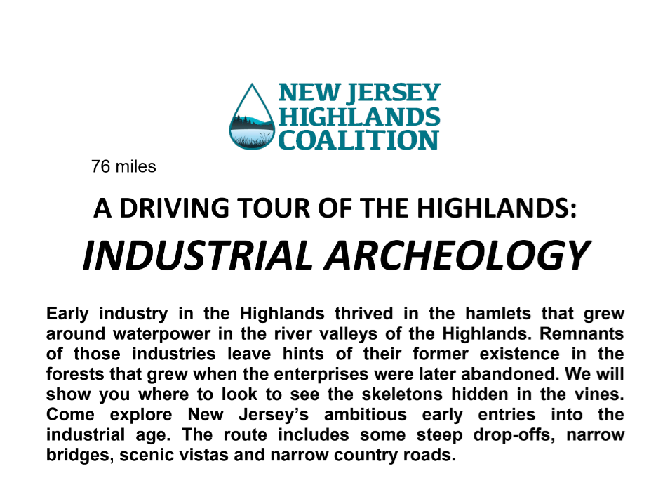 Inspired by the Coalition's popular Car Treks, our team has revised four of our most popular tour routes for the Spring Silent Auction. This Industrial Archaeology Driving Tour Packet provides turn-by-turn directions for a 78-mile route featuring Pottersville, Oldwick, Ken Lockwood Gorge, Spruce Run Reservoir, the Musconetcong River, and the Morris Canal. You are purchasing a 12-page PDF of the Industrial Archaeology Tour Packet that contains detailed directions and rich interpretive history and information about numerous sites and natural features along the route.