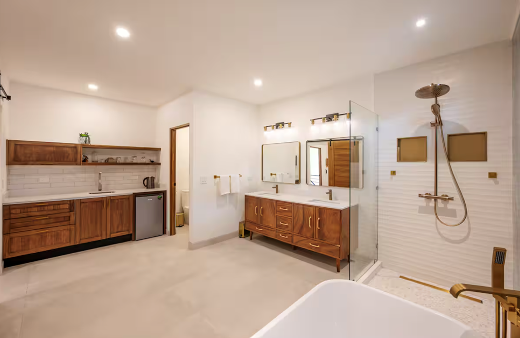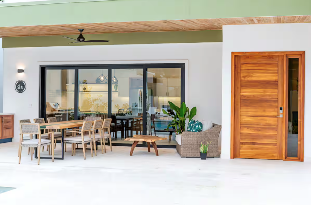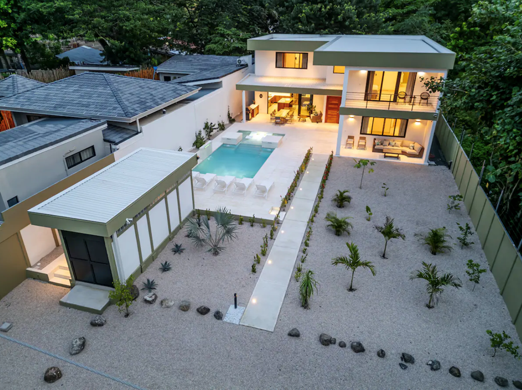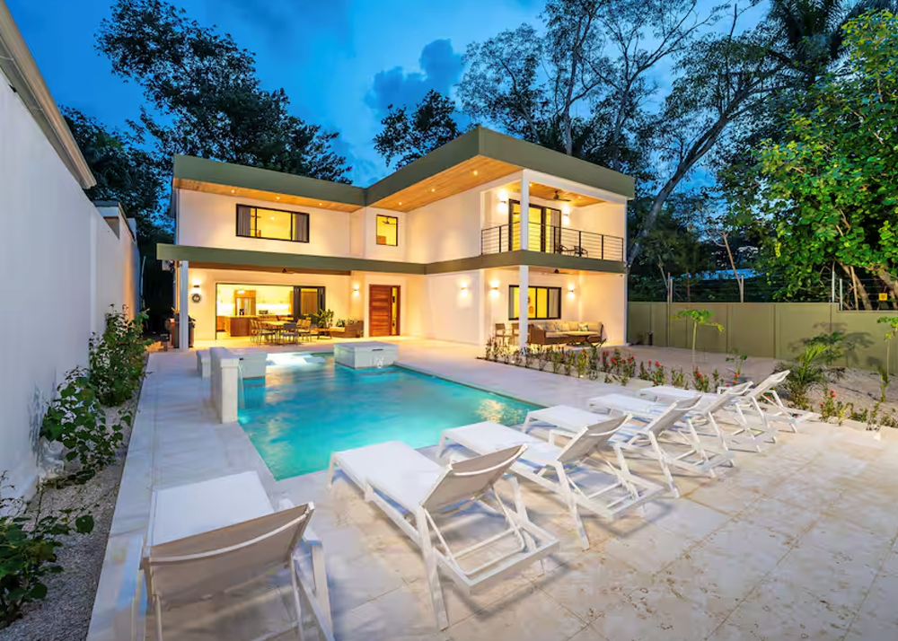 Casa Agave – Your Private Oasis in Playa Potrero Just a 4-minute walk to the beach, Casa Agave combines modern design and natural touches for a peaceful, memorable & secure stay. ✨ Private saltwater pool with fountains ✨ Secure and completely gated property ✨ Fully stocked kitchen with RO water & ice maker ✨ Full washer/dryer ✨ Concierge service available and more! Relax, explore, or do both—Casa Agave is your stylish home base, steps from Playa Potrero’s restaurants, shops, and sandy shores. The space You deserve a Great Vacation! Casa Agave is designed for comfort and connection, offering ample space for families or groups to relax and recharge. Spend the day at the beach, grill dinner under the stars, or let our concierge arrange a private chef, in-home massage, local tour, or airport transfer. Bedrooms & Bathrooms: • 4 spacious bedrooms, 5.5 bathrooms (sleeps 8) • 3 bedrooms with king beds • 1 bedroom with 2 twin beds (convertible to a king upon request) • Ensuite bathrooms in every bedroom for privacy and comfort Living Spaces: • Open-concept design with natural elements and modern décor • Smart TV in the Living Room and in the Principal Bedroom • Custom dining table and outdoor furniture crafted from a tree once on the property • Comfortable lounge areas, perfect for gathering and relaxing Kitchen & Dining: • Fully equipped kitchen with cookware, coffee maker, blender, and all cooking essentials • Modern wine/coffee bar area with wine fridge • Reverse osmosis water system & ice maker • Gas BBQ grill and shaded outdoor dining area for alfresco meals Outdoor Oasis • Private saltwater pool with waterfall fountains, sundeck, in-water loungers, and outdoor shower • Secure, fully fenced property with remote-controlled gate • Outdoor seating areas designed for relaxation day or night Amenities: • Fast, reliable Wi-Fi throughout with a dedicated workspace available upstairs • Air conditioning & ceiling fans in every room • Washer & dryer available for guest use • Beach gear: towels, cooler, and chairs included Family-Friendly Features: • Pack ’n Play and highchair provided • Beach toys for children to use • Board games, playing cards, and coloring books Concierge Services: • Private chef experiences • In-home massages • Adventure tours and excursions • Airport transportation Getting to Playa Potrero: ✈️ By Air: The nearest major airport is Liberia International Airport (LIR), just a 45-minute drive from Playa Potrero. You can rent a car, take a taxi, or arrange a private shuttle directly to your accommodation. Our local concierge team is happy to help with arrangements. 🚗 By Car: Driving from San José takes approximately 4 to 5 hours. The roads are mostly paved and easy to navigate. We recommend using Waze or Google Maps — just enter “Playa Potrero” as your destination. 🚌 By Shuttle or Bus: Private and shared shuttles are available from both Liberia and San José. Public buses are the most affordable option, though travel times may be longer and transfers may be required. Once you arrive, Playa Potrero offers a warm welcome with its relaxed vibe, beautiful beaches, and easy access to local restaurants and outdoor activities. Need help with transportation? Our concierge team can assist with transfers, and if you’re planning to rent a car, we recommend Dollar Rental at Liberia Airport. More details can be found in our Welcome Book. Guest access You’ll have full access to our entire home. This is a space our family enjoys often, and we’re happy to share it with you. Please feel free to use the beach chairs, cooler—we’ve stocked it with everything we use ourselves when we’re here. (There are two small supply closets are locked for owner/staff use.) Other things to note If you would like additional information on airport transfers, rental cars and/or possible excursions please let us know and our local concierge staff will provide personalized service for you and your guests.
